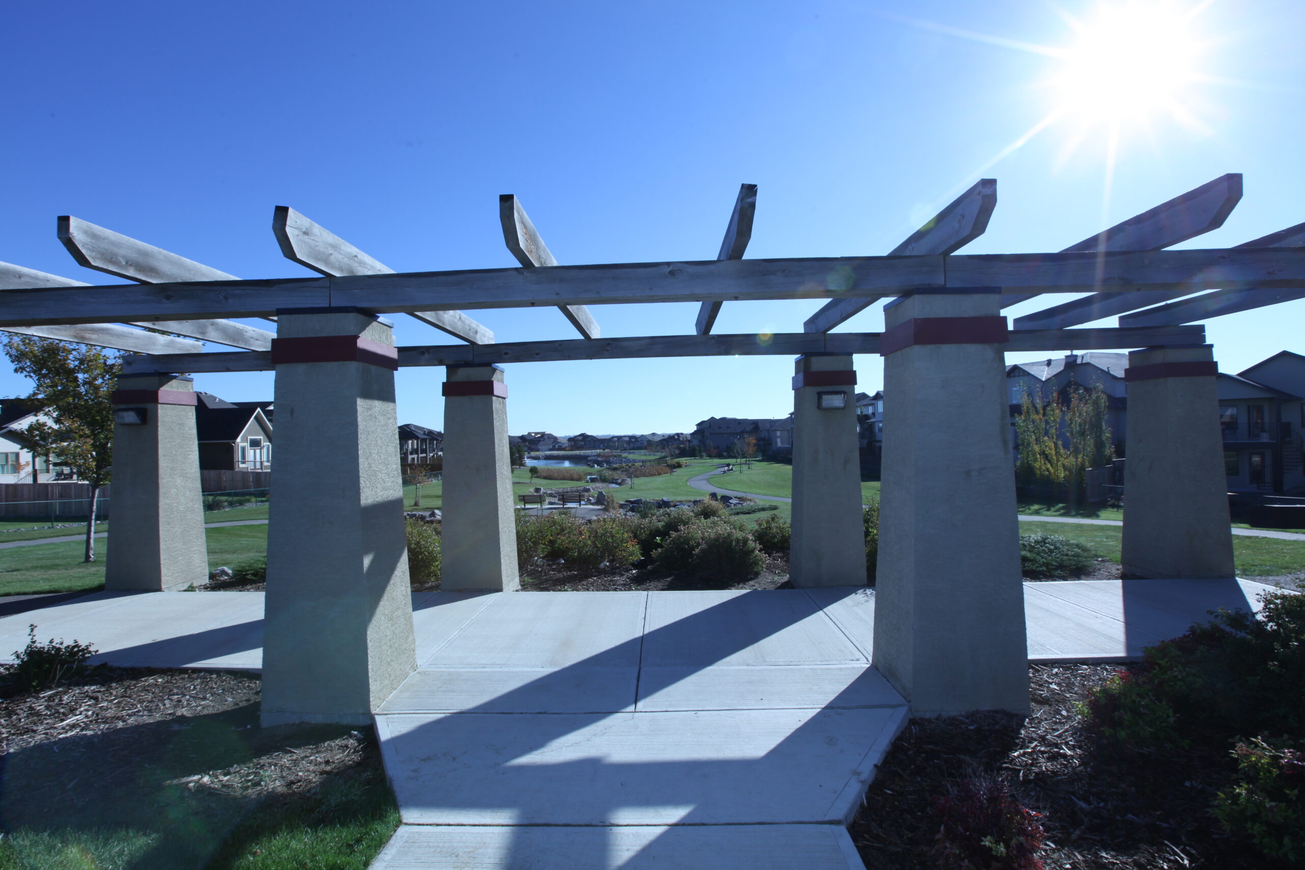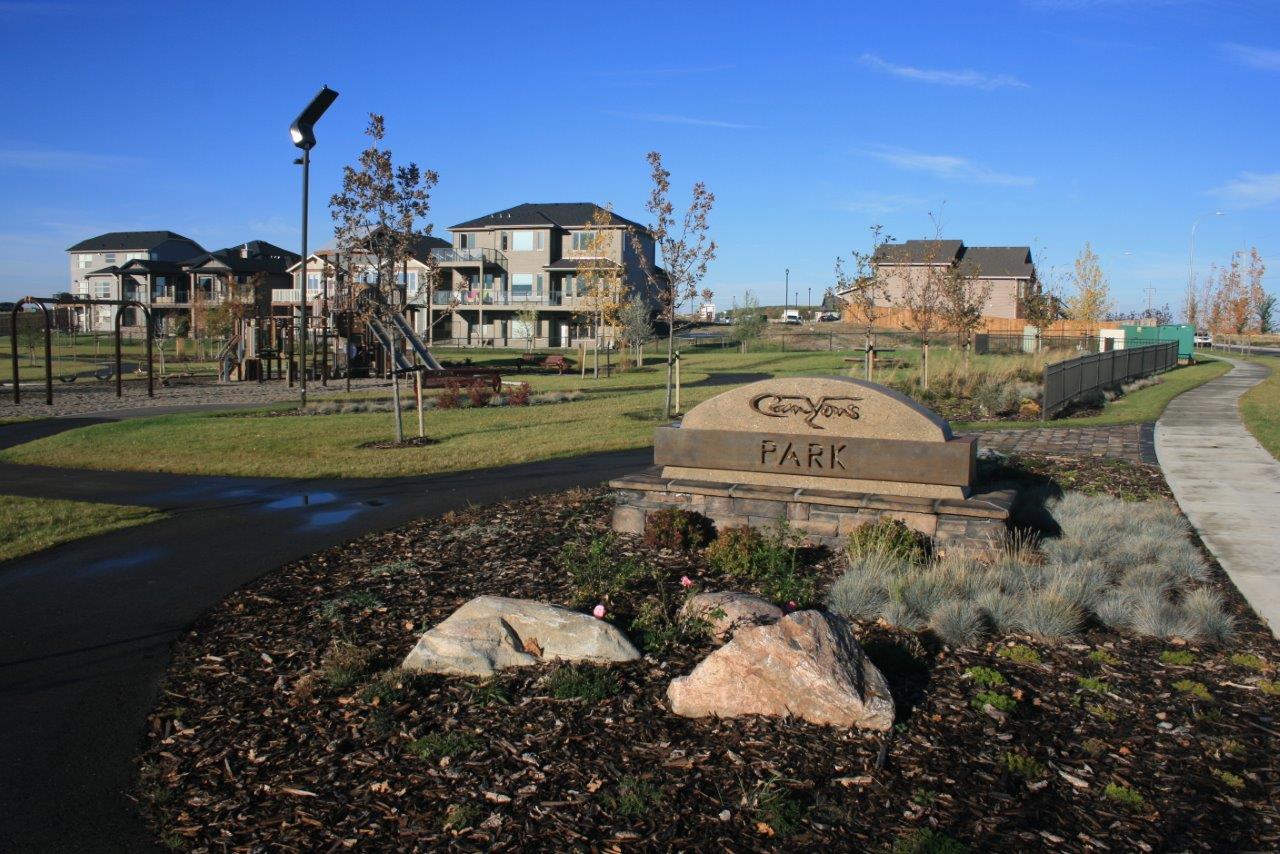 A central amenity of the community is The Canyons Park and pond. It is one of Lethbridge’s larger community parks. It features a large manicured pond with fountain and connects to a smaller pond by a cascading stream and waterfall. There are extensive pathway systems throughout the community with gathering and resting nodes including a gazebo and park benches, a children’s playground and amphitheatre.